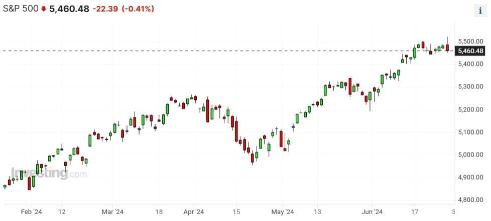 标准普尔 500 指数周五收于 5460.48 点,日内创下今年以来的 31 次新高。