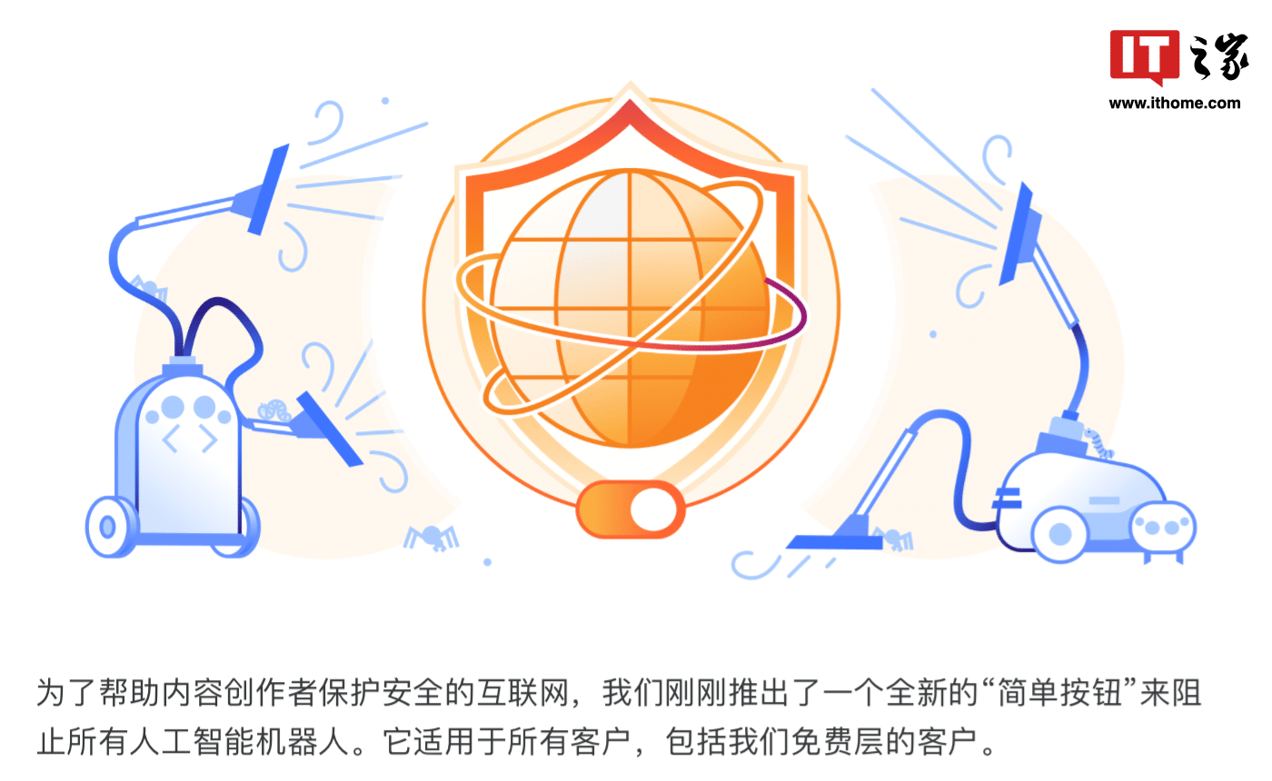 7 月 5 日消息,网络服务商 Cloudflare 近日推出一款名为 「Bot Fight Mode」 的防火墙工具,站长们可以在控制台开启相关服务,从而防止自己网站的内容被用于训练 AI 的机器人爬虫扒取。