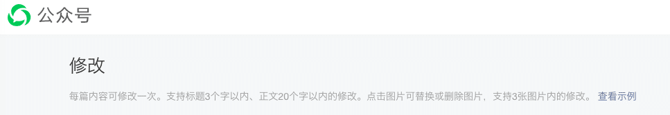 【TechWeb】7月9日消息,微信公众号调整了“修改”功能,增加了“标题修改”功能。目前,微信公众号后台提示,用户可通过微信公众号的“修改”入口对文章进行更改,每篇内容可修改一次。支持标题3个字以内、正文20个字以内的修改。点击图片可替换或删除图片,支持3张图片内的修改。若修改标题,文首会显示「标题已修改」。修改后的标题将在文章页、公众号主页、用户新收到的分享卡片中生效。正文和图片修改后,将在底部展示修改时间。