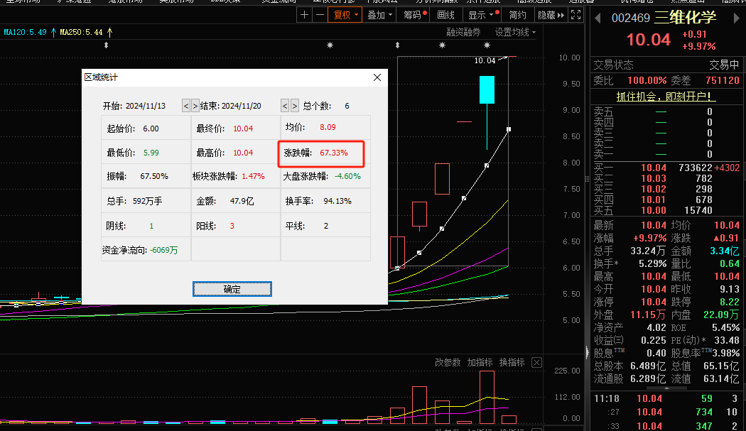 ①化工板块今日早盘大幅走强,三维化学 6 天 5 板,渤海化学 4 连板。