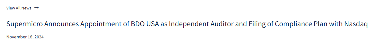 四大会计事务所之一安永的辞职一度让超微电脑完成 10-K 表格的愿望变得渺茫,如今能找到 BDO USA 可以说是暂时解除了燃眉之急。