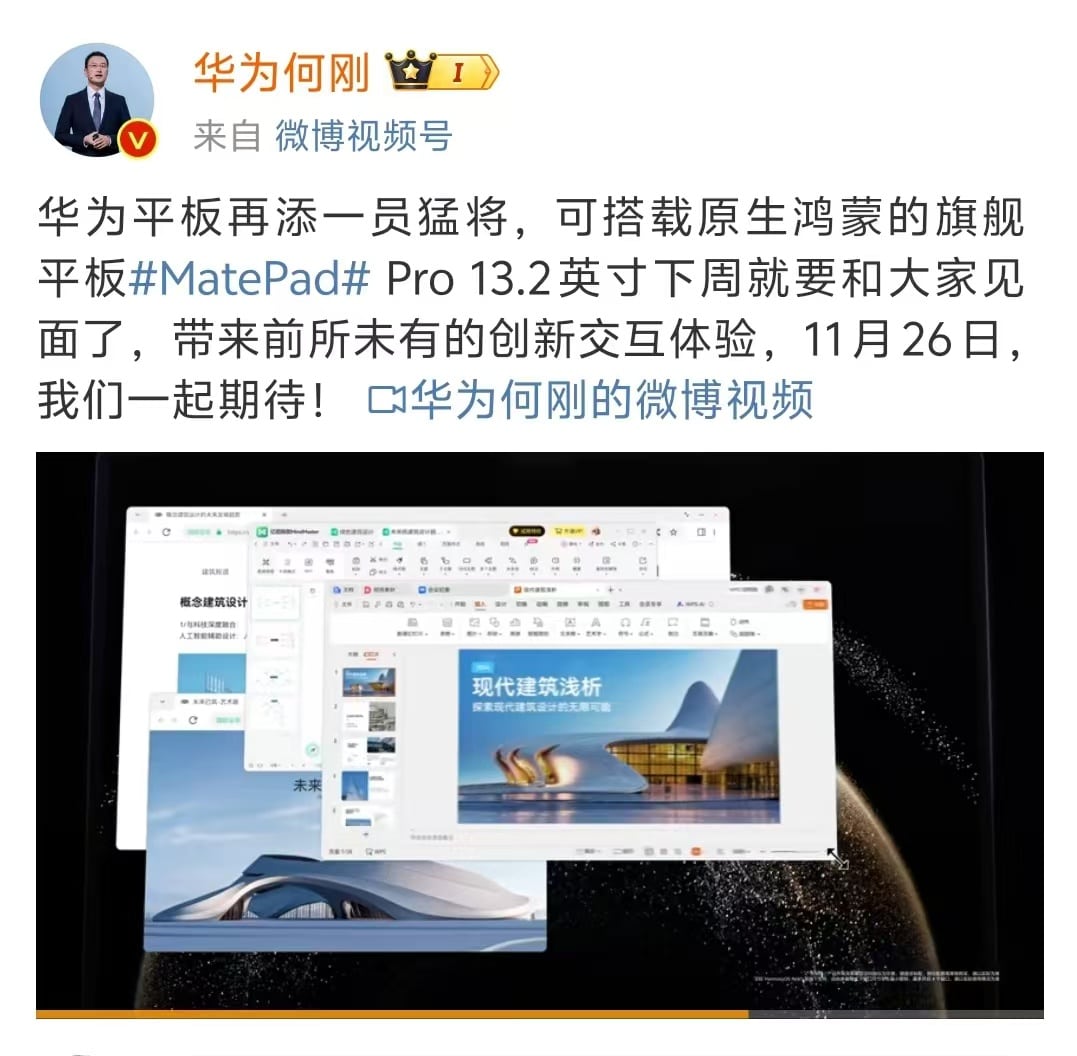 11 月 21 日上午,继手机之后,华为终端在官方社交平台发布消息称,将搭载原生鸿蒙系统的平板即将在 Mate 品牌盛典首发亮相。这也是华为第一次将原生鸿蒙系统扩展至平板赛道。