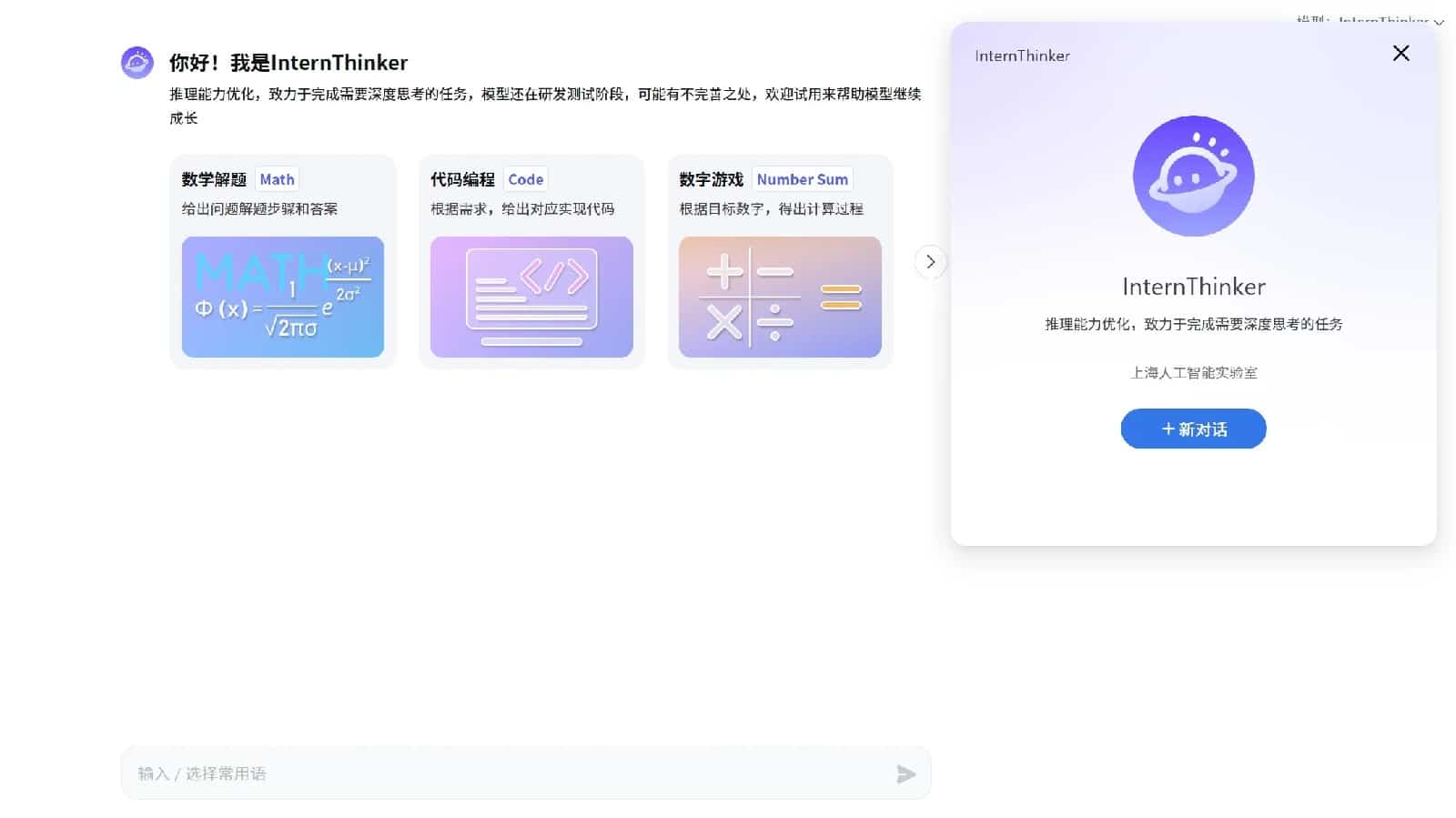 11 月 25 日晚,上海人工智能实验室向社会用户开放了书生·浦语大模型,并在大模型界面发布了强推理模型 InternThinker。据悉,InternThinker 模型具有长思维能力,并能在推理过程中进行反思和纠正,从而在数学、代码、推理谜题等多种复杂推理任务上取得更优结果。