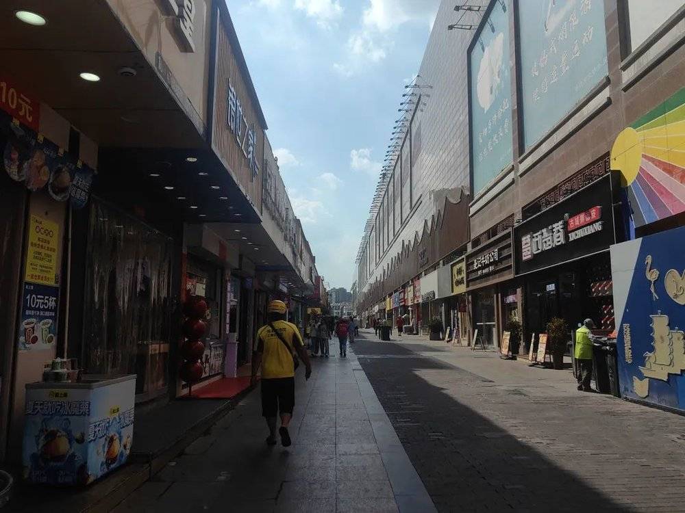 中午饭点的宝龙后街十分清冷,偶见骑手匆匆走过。图源:受访者