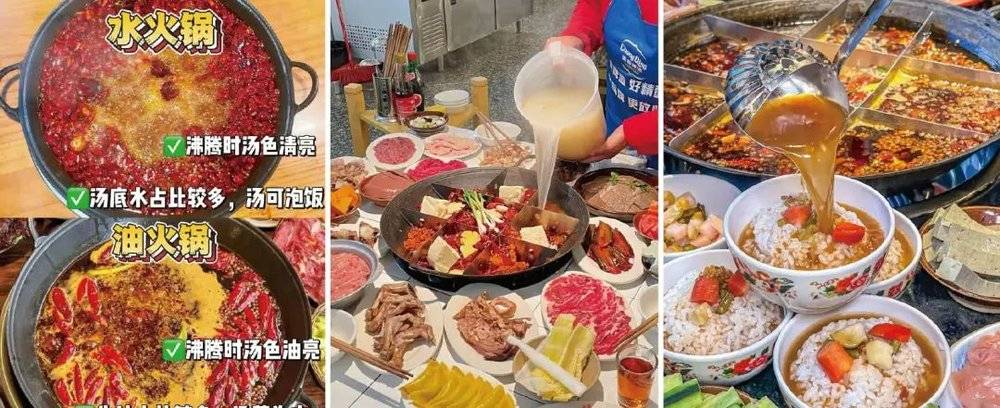 一是 「水火锅」 在川渝两地兴起,大有风靡之势。其实就是 「高汤+少油」 的模式,锅底减少牛油,掺水 (骨汤)变多,口味变淡,锅底甚至可以泡饭吃;小料台也变成了 「原汤+葱花」 的极简搭配。对餐厅而言,这样一反传统火锅的改造,成本低了,客单价也低了,吃的人更多了。