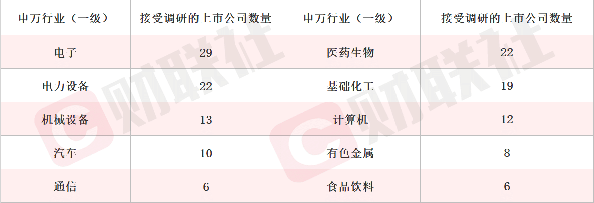 财联社 8 月 24 日讯 (编辑 宣林)据 Choice 数据统计,截至今日,沪深两市本周共 202 家上市公司接受机构调研。按行业划分,电子、医药生物和电力设备行业接受机构调研频度最高。此外,有色金属、通信等行业关注度有所提升。