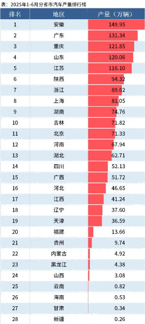安徽反超广东 18 万,稳坐汽车冠军省第一。