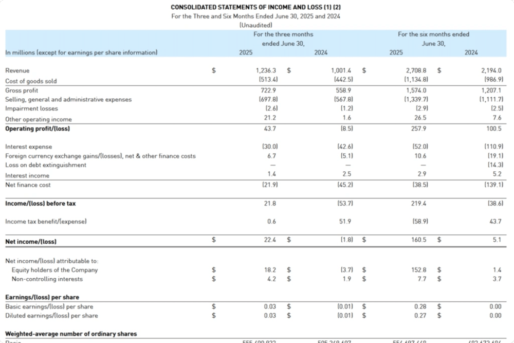 二季度,亚玛芬毛利率增长 270 个基点至 58.5%;调整后毛利率增长 250 个基点至 58.7%;营业利润增长 614% 至 4400 万美元;调整后营业利润增长 130% 至 6700 万美元,其中包括第二季度收到的 1900 万美元政府补助。
