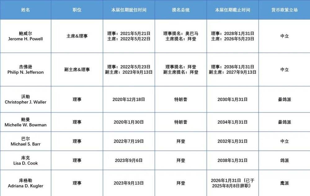 现任美联储理事人员结构一览数据来源:美联储、东吴证券研究所
