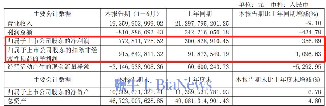 数据显示,江淮汽车上半年实现营业收入 193.6 亿元,同比下降 9.1%,相比去年同期 4.79% 的下滑幅度再次扩大;归属于上市公司股东的净利润为-7.73 亿元,同比下滑达 356.89%,下滑幅度创下多年半年报新高;归属于上市公司股东的扣除非经常性损益的净利润-9.16 亿元,上年同期为 9187 万元,同比下降高达 1096.63%。