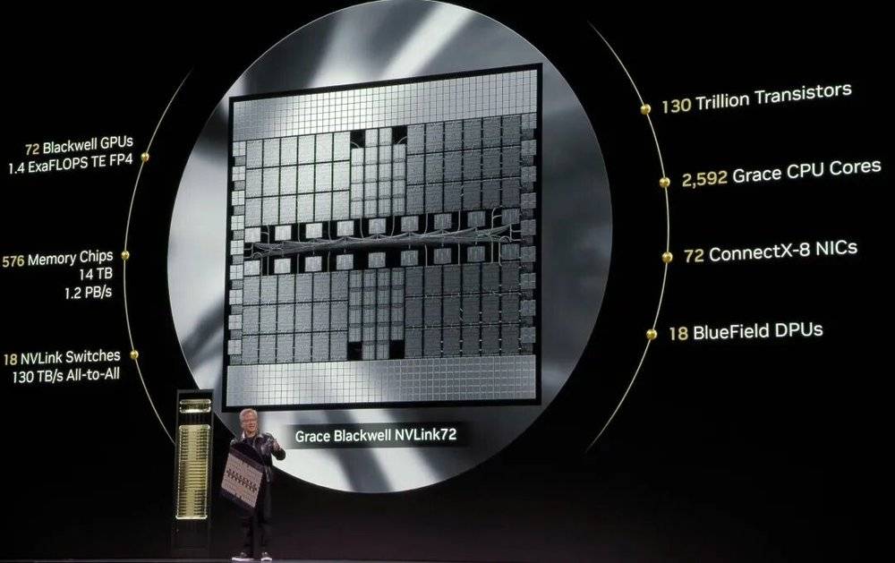 英伟达花费数年时间打造了 Blackwell NVLink 72 系统——一种机架级计算平台,使其能够作为一个单一的巨型 GPU 运行。