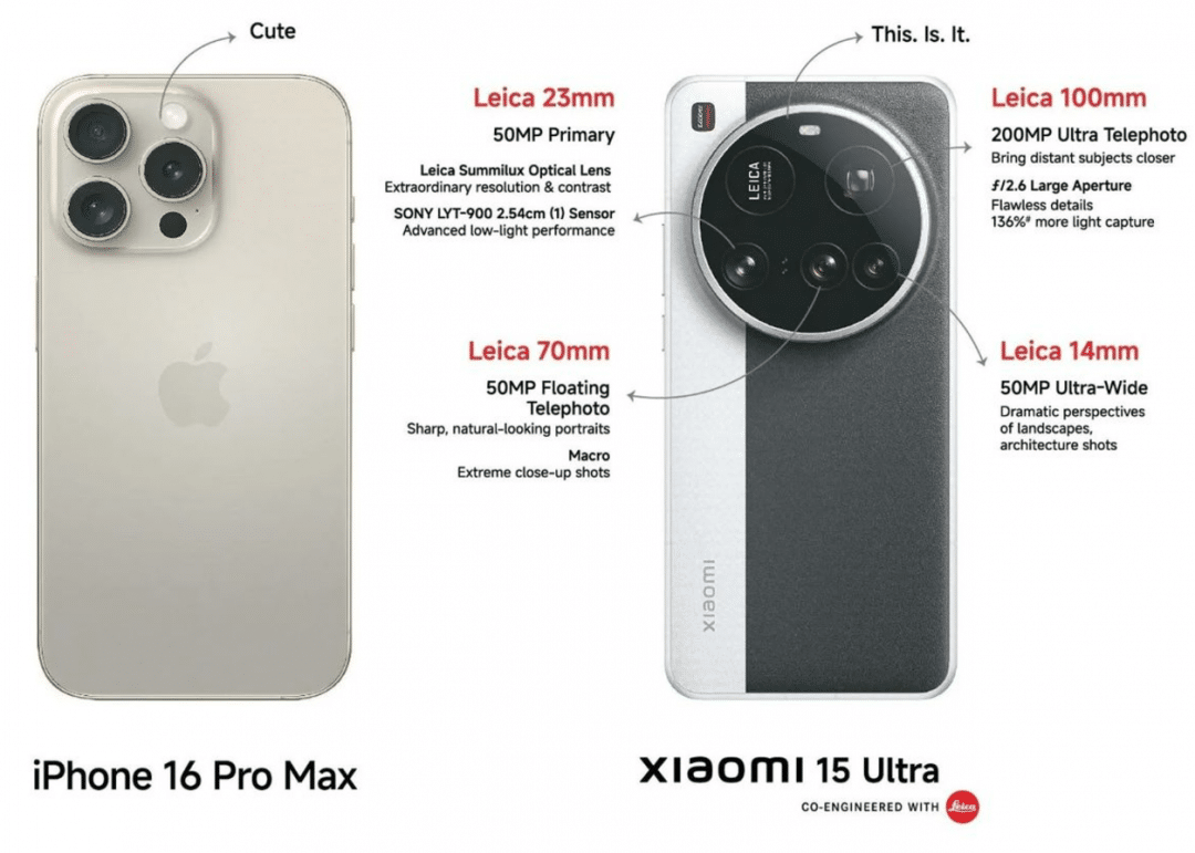 小米这些广告出现在当地印刷媒体和社交媒体上,对竞争对手的高端产品进行了攻击。今年 4 月,一则整版印刷广告写道:如果读者相信 iPhone 16 Pro Max 的摄像头能够与小米新推出的 15 Ultra 相媲美,就祝他们 「愚人节快乐」。