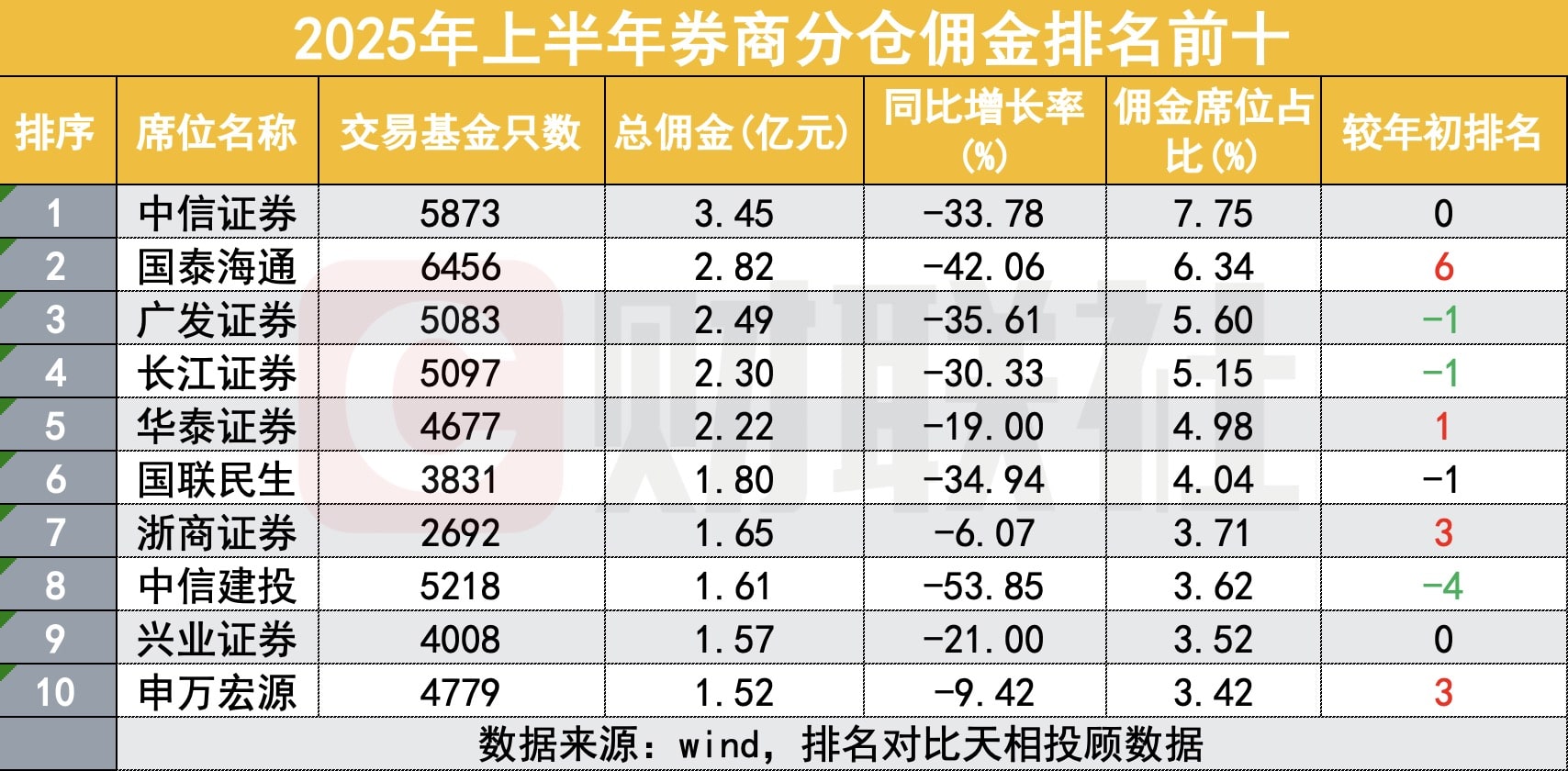 2025 年上半年基金半年报披露收官,券商分仓佣金收入出炉。