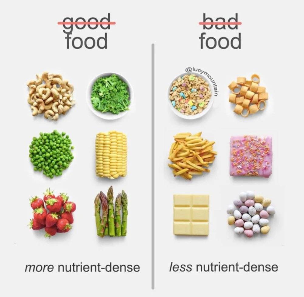 就像带来快乐的巧克力、冰淇淋、甜甜圈总是被作为热量对比的背景板,以突出它们对健身事业的阻碍之大,更应该打入冷宫。而热量对比的另一面,绿叶菜、苹果、鸡胸肉则以低热量的优势常驻健身红榜,成为了食物界的道德标兵。