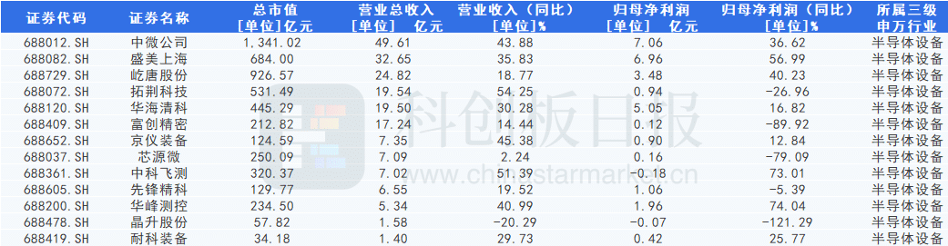 12 家科创板半导体设备公司营收正增长