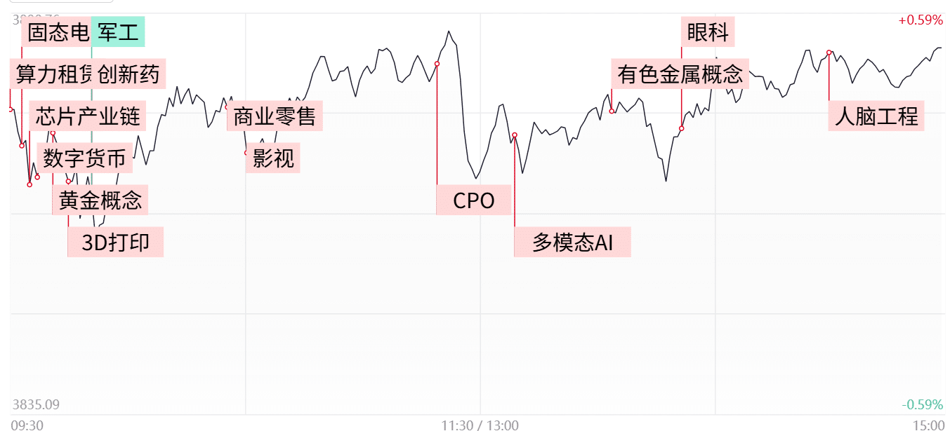 今日市场延续震荡上行,三大指数继续全线收红,创业板指再度涨超 2%,虽然量能小幅萎缩,但指数维度依旧维持着震荡向上的惯性,尚未出现明显的转弱信号。另一方面,短线情绪也于今日有所回暖,个股涨多跌少的同时,逾百股涨停。值得注意的是赚钱效应不再仅仅局限于算力硬件方向,有色、创新药、固态电池等多个题材同样表现活跃。在热点呈现良性轮动的情况下,或更有利于行情的延续。