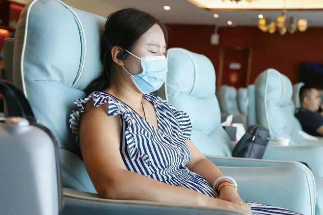 外访期间,王真兮在机场抽空休息。