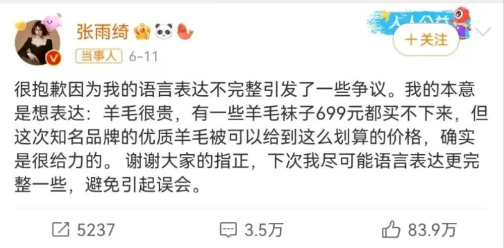 事后的解释也略显苍白,估计 99% 的普通人三辈子都没见过 699 一双的羊毛袜子。(图/微博)