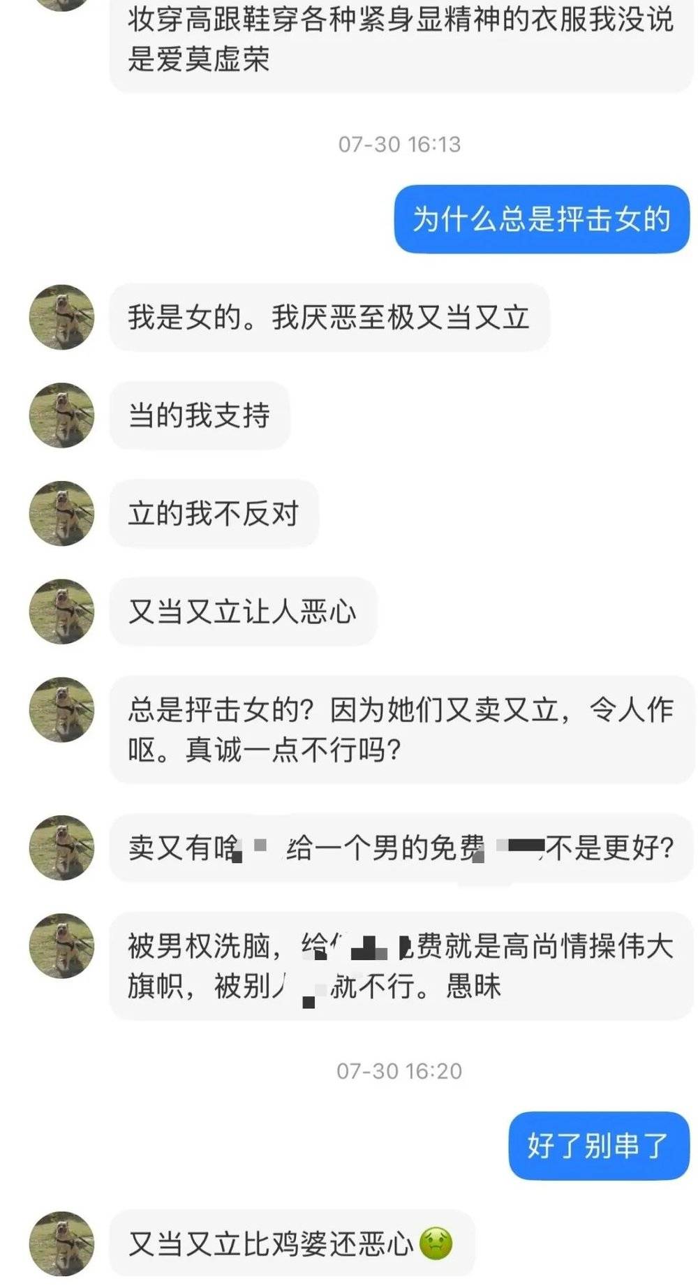 「我们这样的人你以为是爱慕虚荣的披金戴银的那种?」「常年穿高跟鞋不是为了取悦男人?」「爱慕虚荣就是看重金银珠宝,就像女人穿着高跟鞋,时刻穿着胸罩,要保持荷尔蒙旺盛的假象」「讨厌又当又立的女人」......