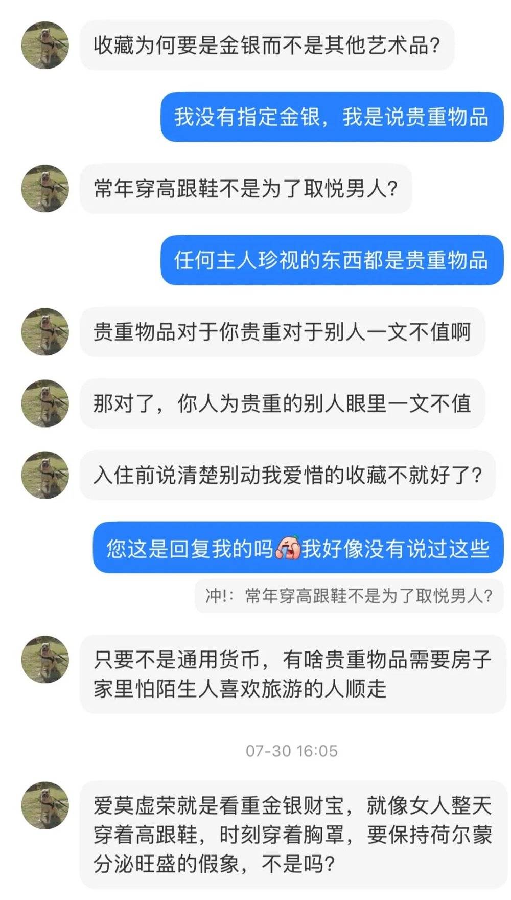 「她」 的这些莫名其妙的话语,更让人疑惑,屏幕后的另一边究竟是一位什么样的人在敲键盘?是真正的女性,还是其他身份?为什么只是简单咨询 「她」 如何保障房子中贵重物品的问题,「她」 的厌女情绪却强烈地冲出了屏幕?