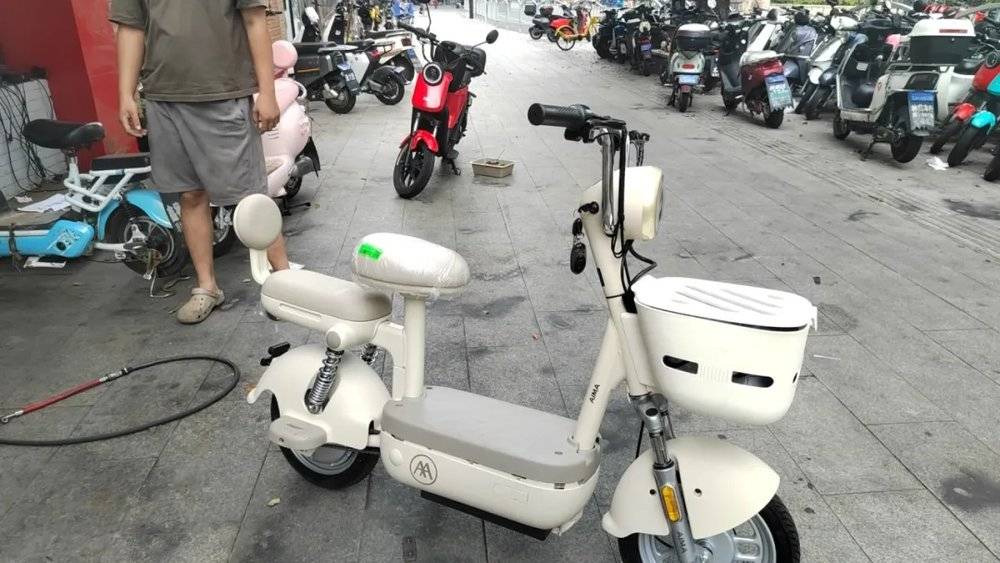 在张天霖的店门前,摆放着数十辆新旧混杂的电瓶车,红的、白的、黑的,它们停放在马路边,在没有遮挡物的条件下,既会经历风吹日晒,也会遭受狂风暴雨。