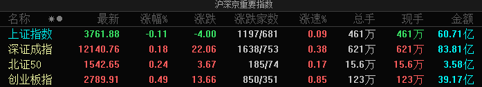 黑马财经财经讯 9 月 5 日,三大指数开盘涨跌不一,沪指低开 0.11%,深成指高开 0.18%,创业板指高开 0.49%,体育产业、家居用品等板块指数涨幅居前。