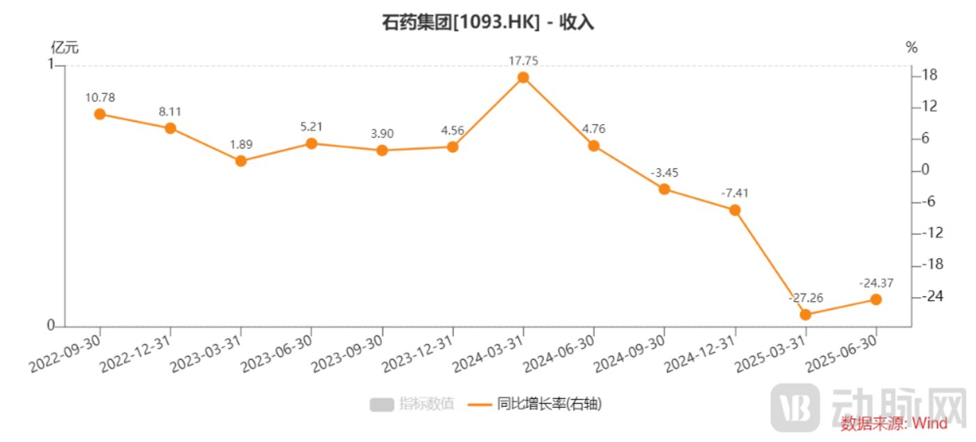 图 2. 石药成药业务收入变化 (资料来源:石药 2025 年中报)