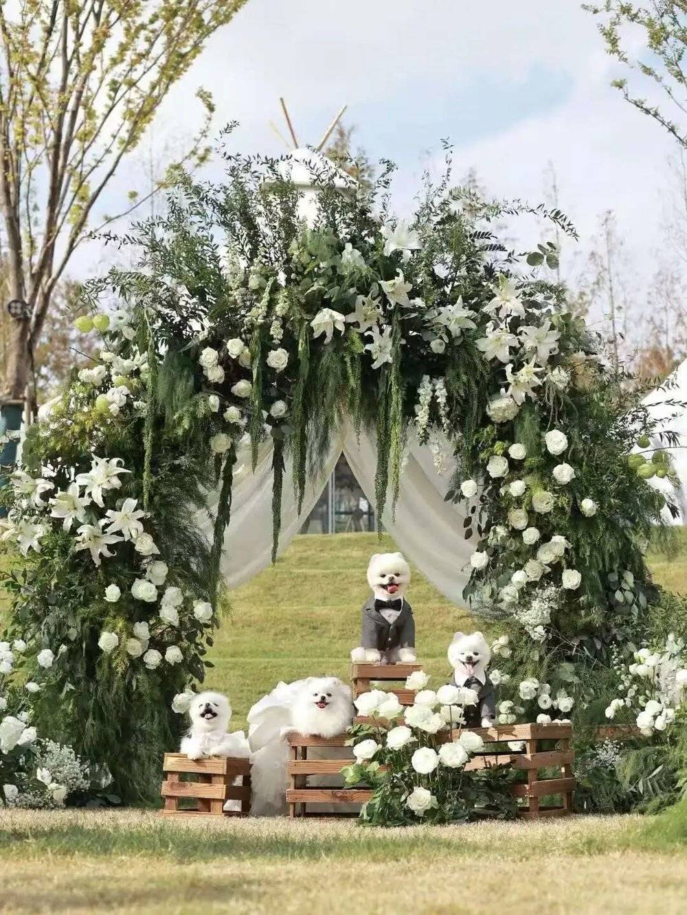 「两只小狗的镜头感特别好,起初只是给它们拍了婚纱照,后来又有了办婚礼的念头。也是想趁这个机会把好朋狗们聚在一起,就像每年都办的生日会一样。想法越来越多,婚礼就变得很隆重了。」@Dear-糯米圆子介绍。