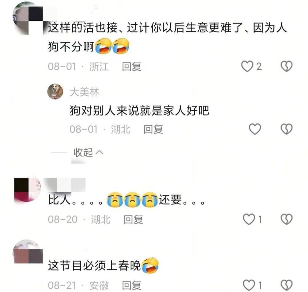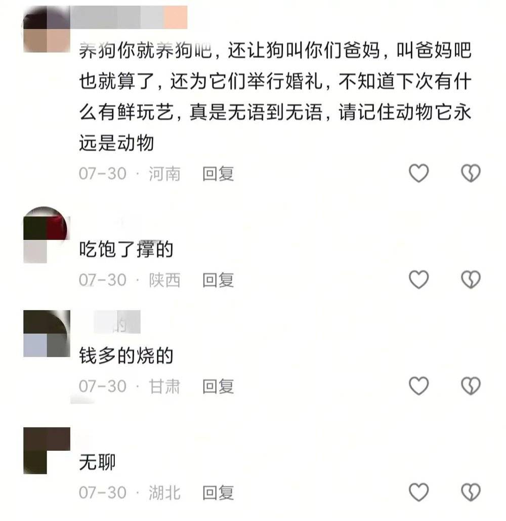 有人送出祝福与赞美,认为 「这是给 『家人』 最好的爱」;也有人表达不解与质疑,直呼 「看不懂」;还有人嘲讽宠物主人吃饱了撑的、人狗不分,甚至抨击李力啥钱都挣,「这样的活都接,以后只能给狗当司仪了!」