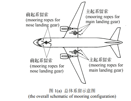 在上海飞机设计研究院选用的方案中,更是精细到 「前后、左右开弓」,从前左、前后、后左、后右四个方向分别用系留绳绑起,使绳子与地面形成 45°的稳定角 [22]。