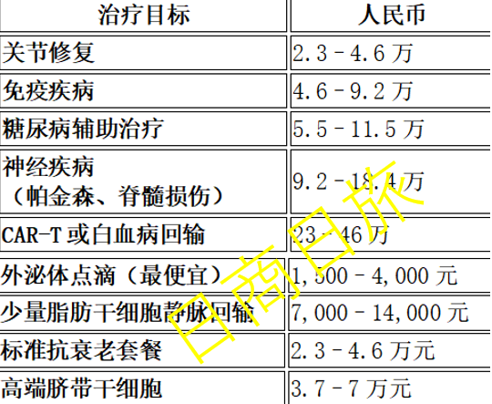 不完全统计日本干细胞治疗价格