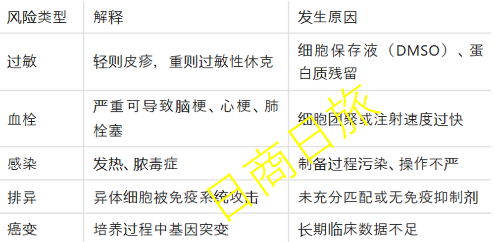 可能 1:干细胞疗法本身就有过敏、血栓、排异、感染甚至癌变等风险,即使是自体干细胞。