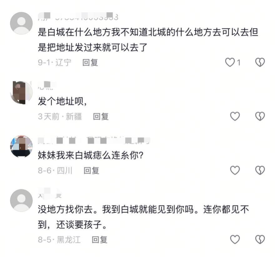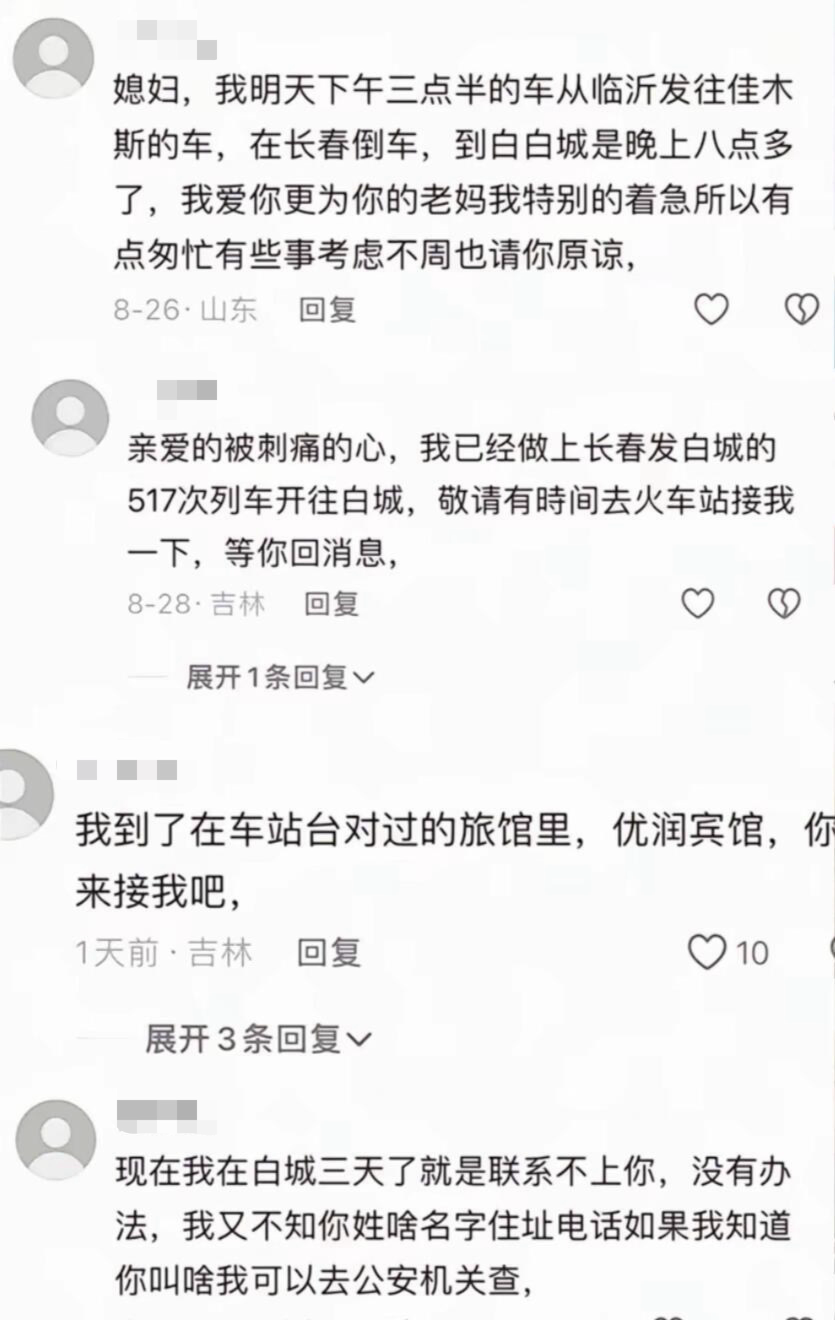先是一个山东临沂大爷只身一人坐火车抵达吉林白城,在火车站对面的 「优润宾馆」 苦等 3 天,始终没见到想见的人;再是一位黑龙江九旬老人,任凭家人怎么阻拦,都执意要前往白城寻觅心上人。与此同时,还有不少大爷大叔大哥正在奔赴白城的路上。