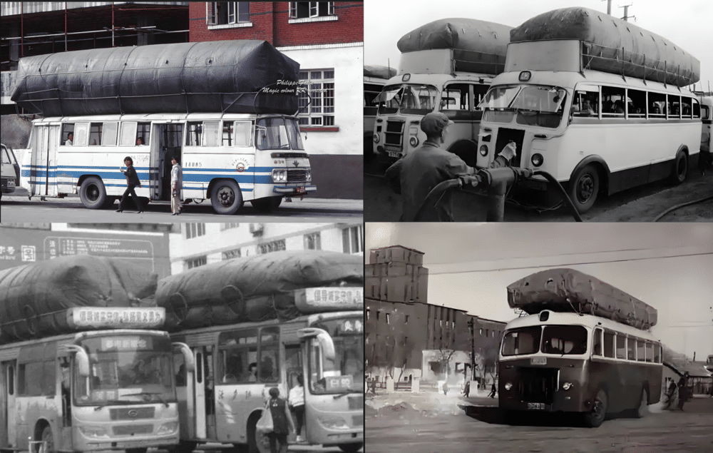 (图 1:建国初期石油短缺,公交车被改装为 「煤气车」)