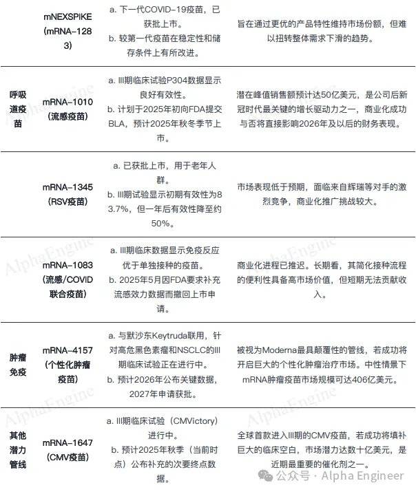 Moderna 通过广泛且深度的研发管线构筑了关键的长期竞争力,有效对冲了对新冠疫苗单一产品的依赖风险。
