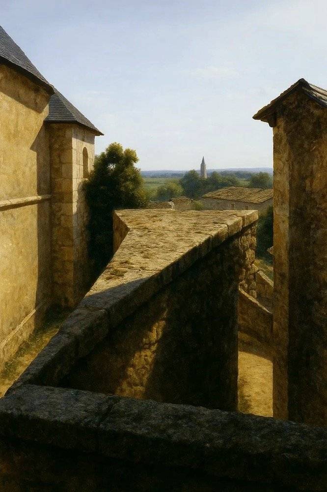 相比 GPT-4o,《勒格哈的窗外景色》 在 Flux 模型的复原中,被处理成了一座被遗弃的历史遗址,屋顶只剩下零星红瓦,仿佛早已被风雨和时间掏空。