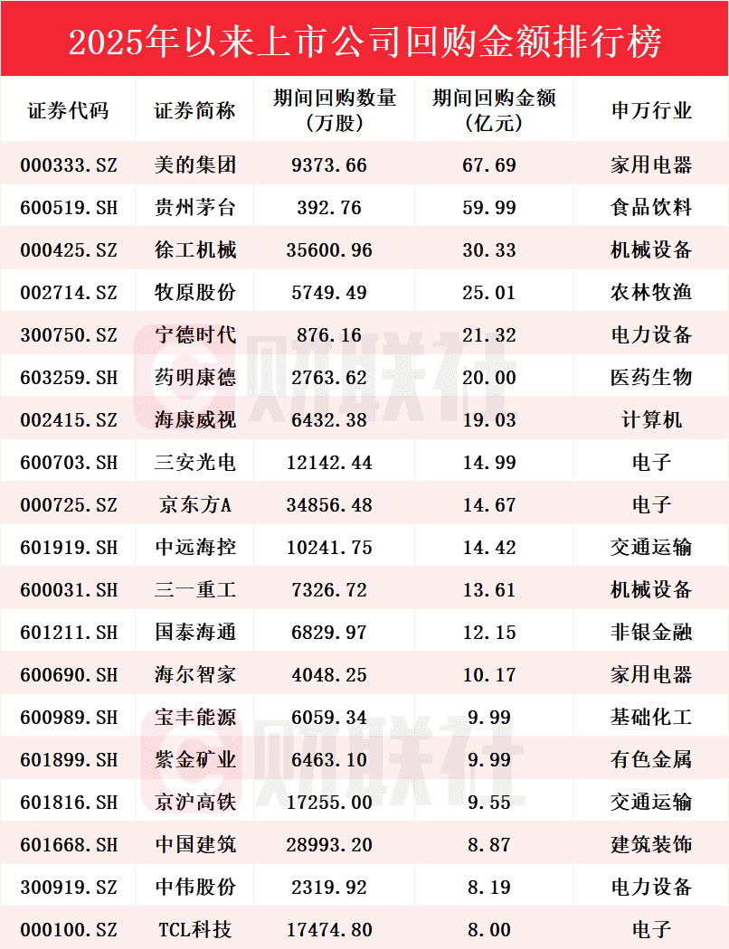 累计金额超 1090 亿!逾 1340 家 A 股上市公司今年以来实施回购,个股回购额排行榜出炉