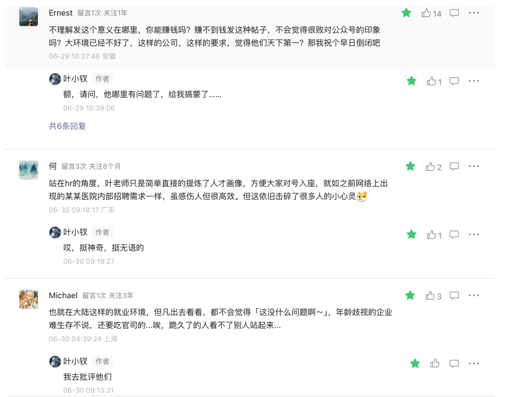 另一方面,最近也有躺枪情况,原因是帮朋友发了一篇招聘贴,其中碰到了敏感词年龄歧视,而后果然情绪激烈: