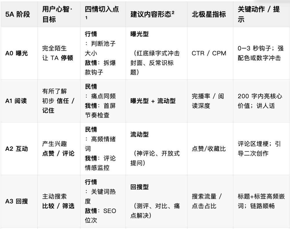 他们都没错,关键在于理解并驾驭这套机制,其实前面文章的 「四情 + 5A + 四类内容」 已经提供了答案: