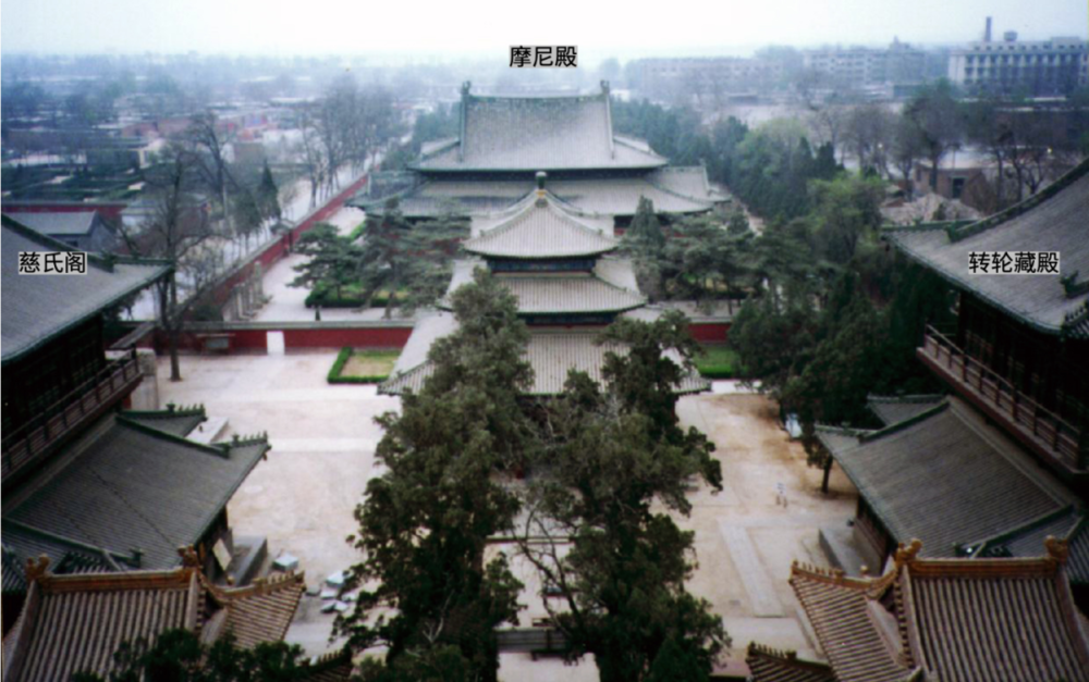 这个寺庙今天剩下的几个宋代原构,非常非常珍贵。一个是摩尼殿,一个是转轮藏,一个是慈氏阁,再加上这个正定菩萨,所以这些是现存北宋建筑群最重要的代表。