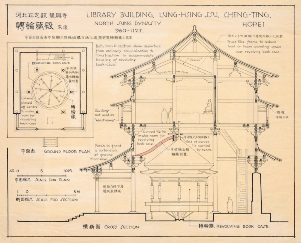 ▲正定隆兴寺转轮藏殿平、剖面图 《手稿》