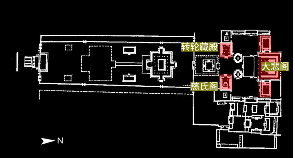 我们去看的那一次,上世纪 90 年代又进行了一次重建,用仿宋的形制把大悲阁重建了一回,旁边的两个小阁也重建了,飞廊也做出来了。可惜没有按照当时考古准确的平面,所以还是小一号。