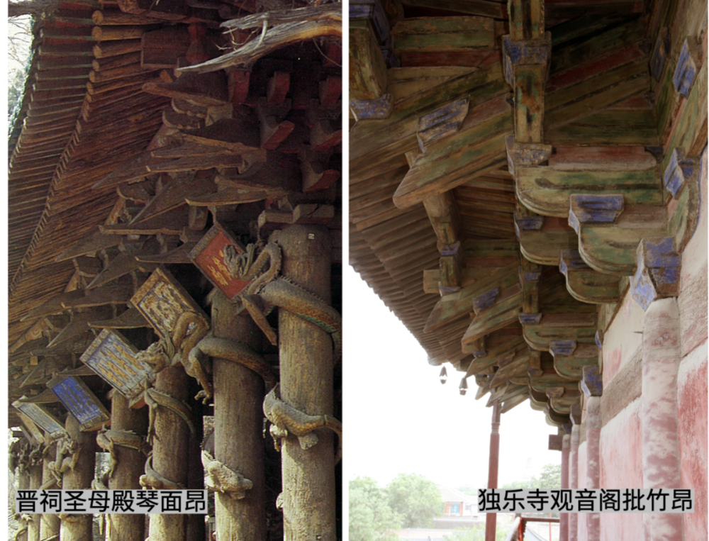 可是后世受它影响,大家基本上都用琴面昂。甚至到了什么程度,我们看到的这些昂都是假的,原来该是拱的部分硬被做成昂了,前半段长得像昂,其实是一个拱。也就是匠人在应有的木结构逻辑之外,开始加强它的装饰性,甚至不惜造假。