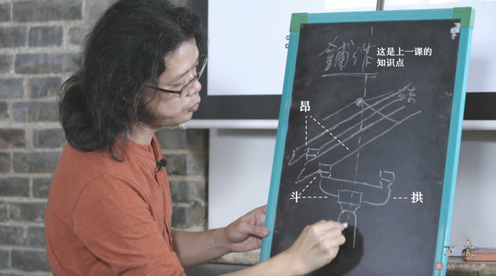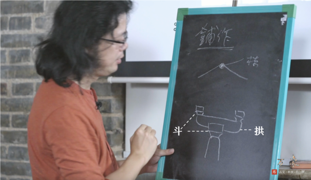 一般在柱头上最大的是大斗,或者叫栌斗,它往外可以悬挑出拱,然后上头再放更小的斗。