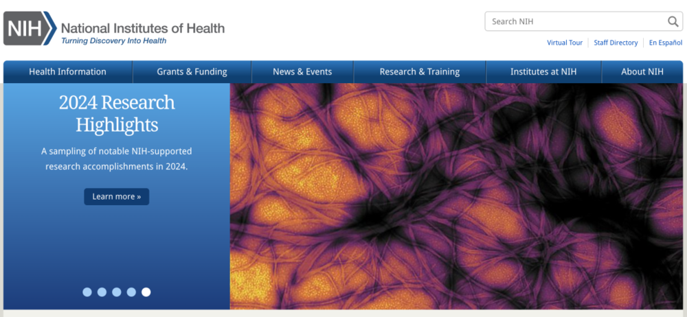 NIH 是美国联邦政府下属的主要研究机构,每年管理的资金超过 450 亿美元。该机构致力于支持生物医学和公共健康研究,推动医学创新,并改善全球健康。它涵盖多个领域,如癌症、心脏病、神经科学和传染病等。NIH 不仅提供研究资助,还支持大学、医院和其他研究机构的科学家进行基础研究和临床研究,目标是寻找疾病的预防、治疗和治愈方法。