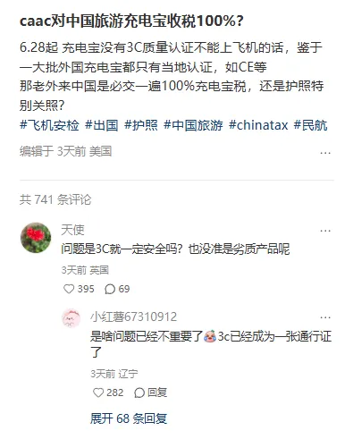 更有人提出了充电宝 「国际标准」 方面的疑问:「很多外国充电宝只有 CE 认证,那老外来中国是不是也得交一次充电宝税?还是护照能特别关照?」