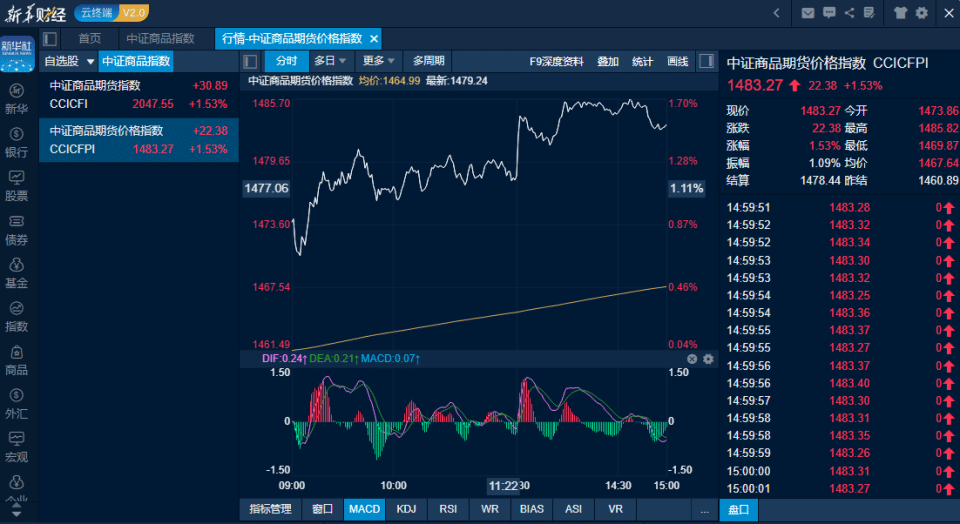 图为中证商品期货价格指数日内走势图 (来源:新华财经专业终端)