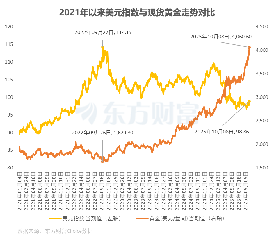 很有意思的是,至少从东西方金价间的行情对比来看,我们可以得到一个初步的答案:这一回引领黄金冲破 4000 美元大关的 「主力军」,确实更多是来自于西方的投资者。这也令黄金在这个缺乏中国投资者参与的十一长假里的爆发,显得并不怎么突兀……