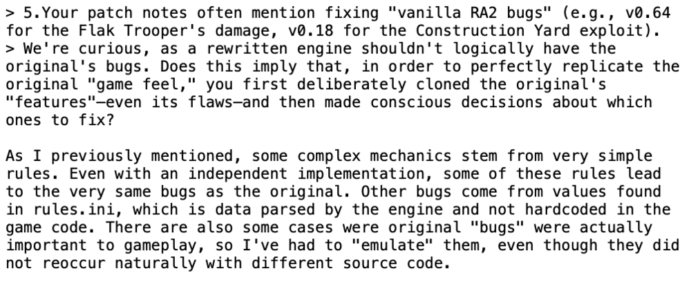 整个游戏逻辑核心引擎,都是 Alexandru 靠着录屏、慢放、逐帧分析、修改 rules.ini 文件、一遍遍测试、试错,推导出游戏逻辑的。