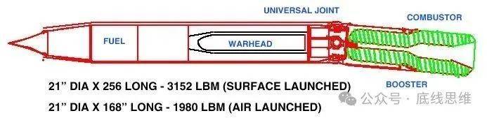 28 年前刚刚吞并麦道公司的波音,可不是现在这个波音,正是 「春风得意马蹄疾」,麾下猛将如云,但闻美国海军想要一款比 「战斧」 更适合打击时间敏感型目标的高速导弹,便把之前与普惠等业界巨头合作的一系列组合冲压动力方案献上,号称最终产品是一个能塞进 MK41 垂发的、「700 磅 (近 320 千克)载荷/700 海里 (近 1300 千米)射程」 的 「短平快」。